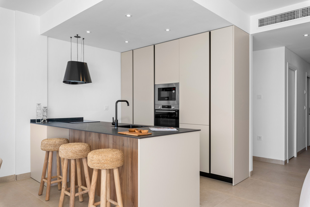 Modern style apartments, designed with open spaces and large windows, kitchen island, master bedroom with dressing room. Two bathrooms. The ground floors have big terraces facing to the pool whilst the phenthouse boast a solarium of more than 70m2. All homes are provided with a underground parking space for their vehicle and Storeroom.