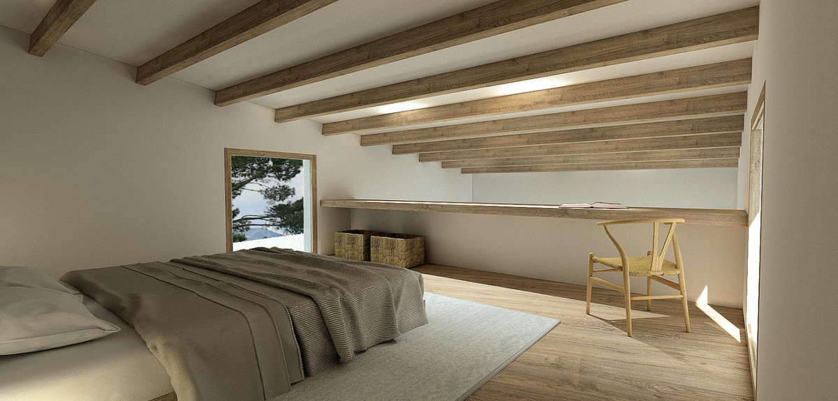 Spread across two floors, the property offers three bright bedrooms, two bathrooms and a guest toilet, thoughtfully designed to maximize comfort, privacy, and functionality. The upper level features open-plan living areas that extend seamlessly to the exterior through large windows, creating a strong visual connection with the landscape while inviting natural light and cross ventilation.